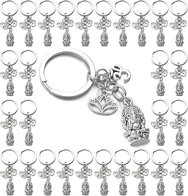 PHAETON 20PCS Ganesha Keychain with Lotus Charm Buddha Key Ring Key Holder Buddha Keychain, God Of Wealth Elephant Keychain for Festive Occasions, 3.18inch, Silver