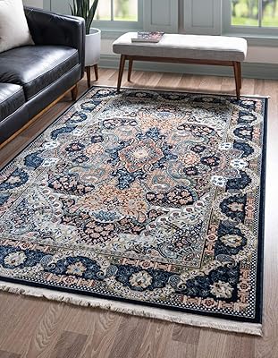 Unique Loom Narenj Collection Classic Traditional Medallion Textured Design Area Rug, 10 x 13 ft, Navy BlueTan